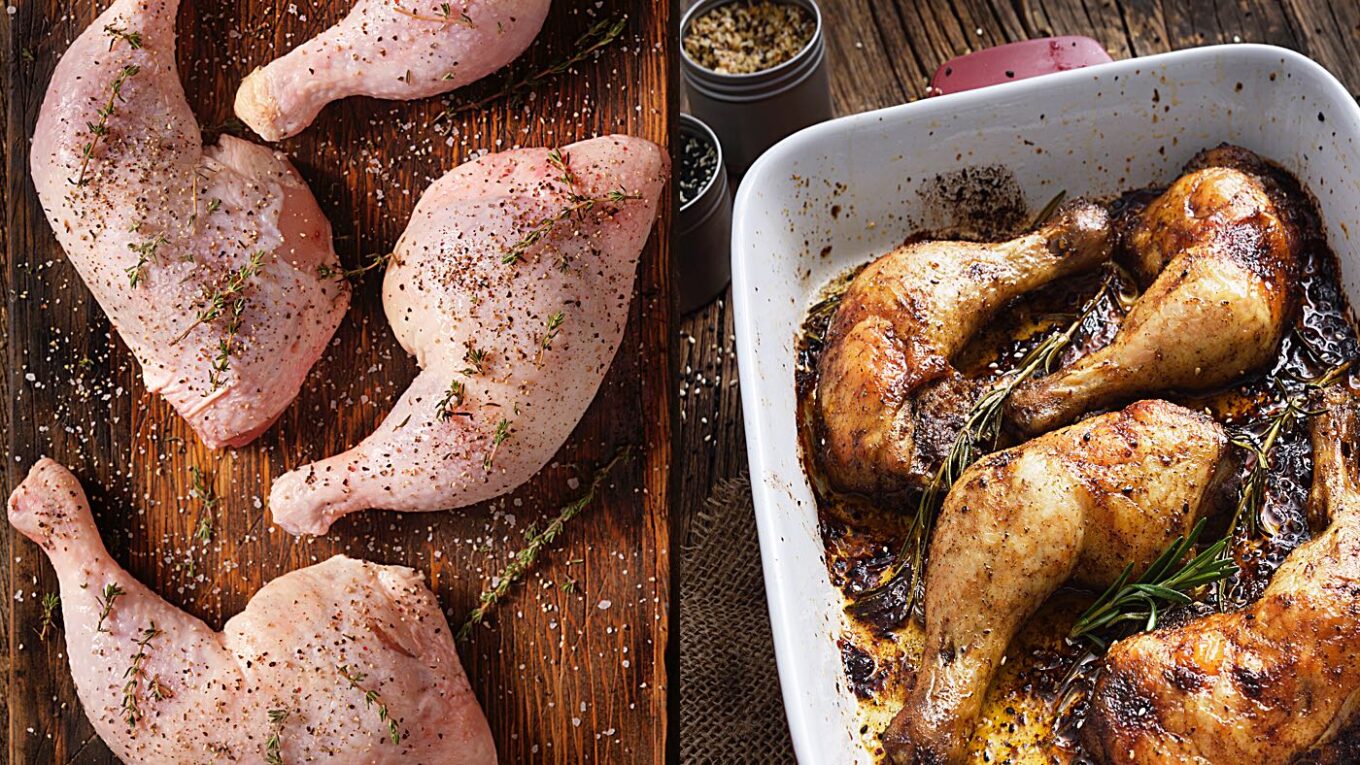 Salz und Pfeffer | abschmecken. Danach den Reis kurz ruhen lassen. Anschliessend den Reis auf Tellern verteilen und die Pouletschenkel darüber anrichten. Hat sich im Ofen Pouletsaft gebildet, kann dieser auch noch ins Risotto gemischt werden. |